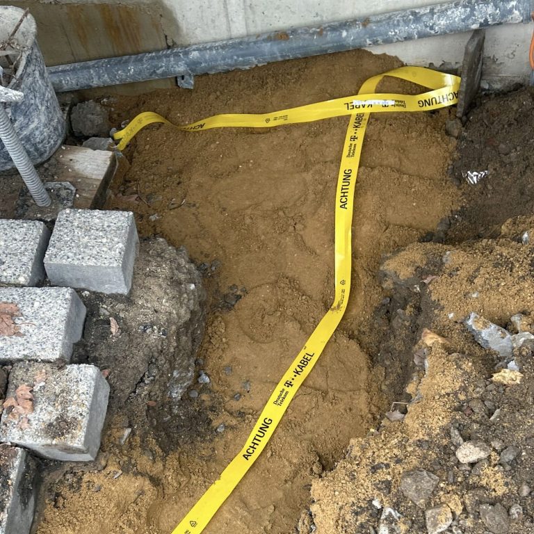 Bei dieser Maßnahme wurde die Oberfläche geöffnet, um alte Leitungen und beschädigte Kabel im Untergrund zu erneuern, beispielsweise für Straßenbeleuchtung oder Versorgungstechnik. Nach der Sanierung des Untergrunds wurde die Fläche wieder fachgerecht hergestellt, wie wir es auf vielen Baustellen im Raum Osnabrück, Oldenburg und Diepholz durchführen.